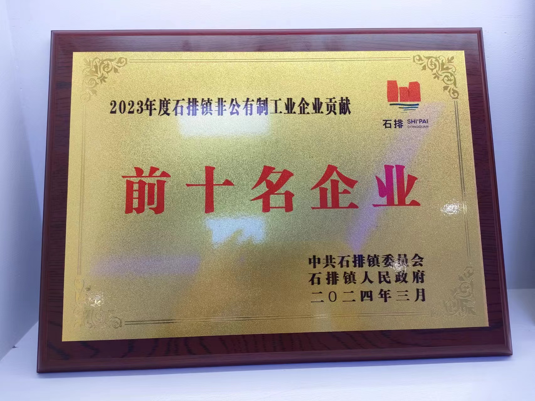 特姆優(yōu)榮譽再添新章,榮獲2023年度石排鎮(zhèn)非公有制企業(yè)貢獻獎第三名!